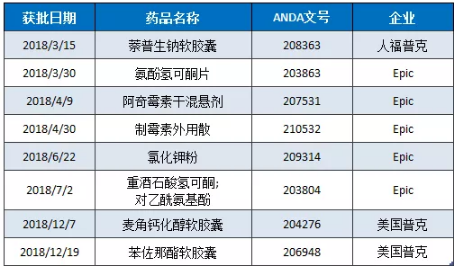 唯一實(shí)現(xiàn)ANDA批文小爆發(fā)的人福醫(yī)藥以13個(gè)品種獲批排在所有公司首位,其中除了5個(gè)品種由宜昌人福申報(bào)之外,其余產(chǎn)品均為普克全球中的三家公司完成。
